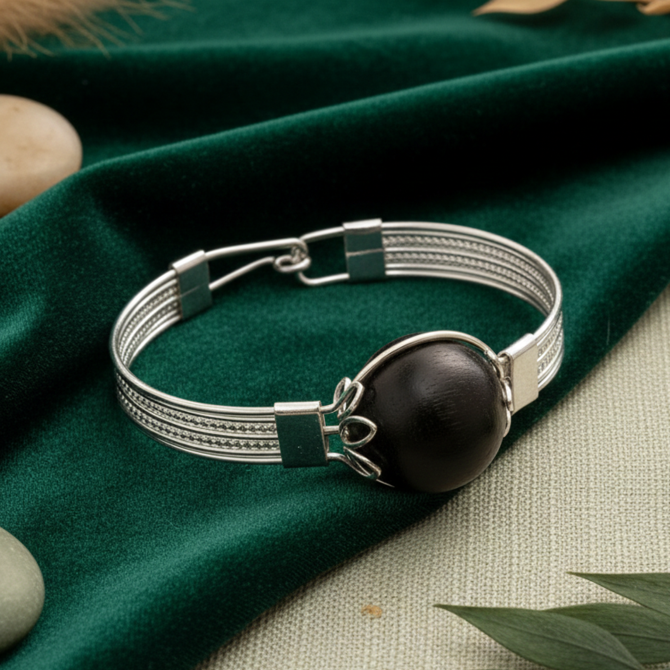 Silver Bracelet With Original Karungali Bead