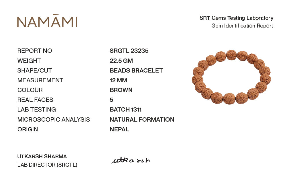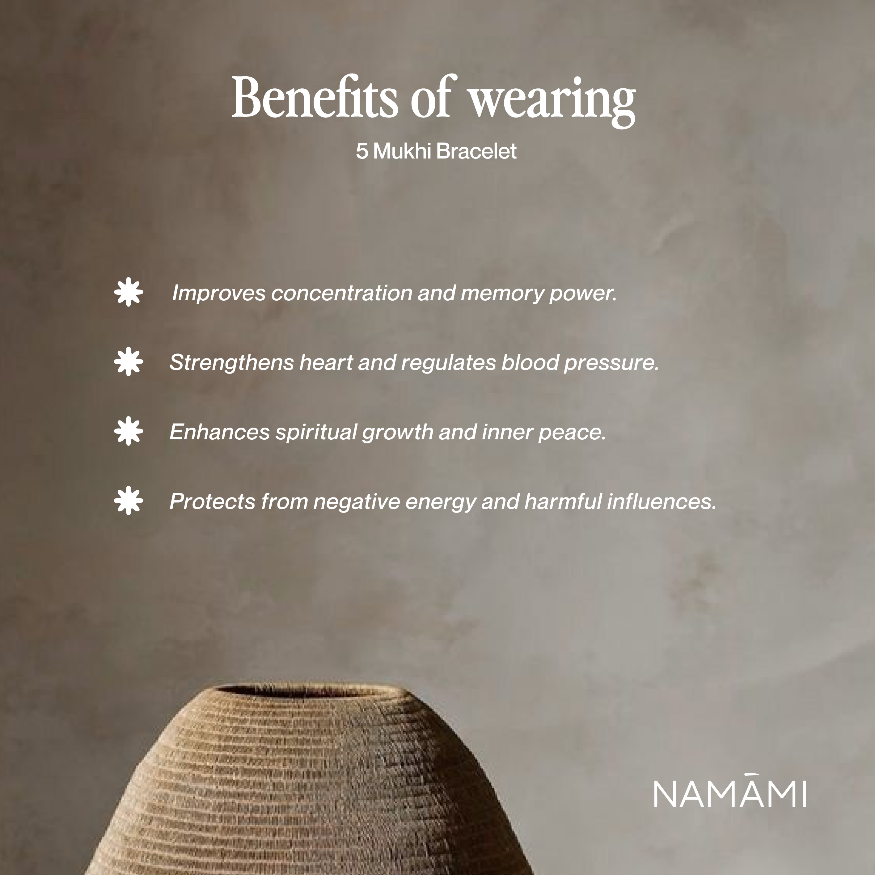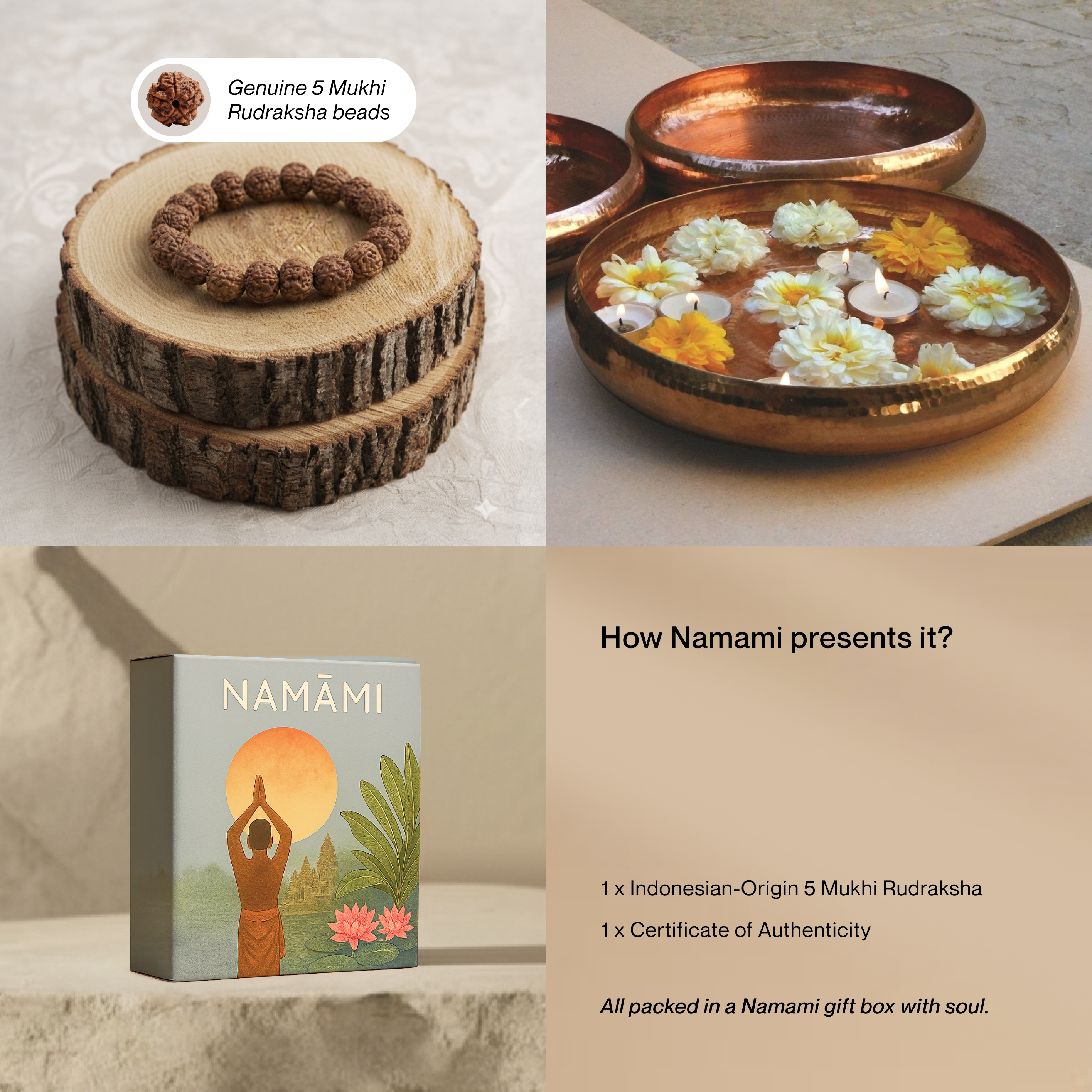At Namami, each piece is crafted with devotion and authenticity, blending traditional spirituality with modern elegance. The 5 Mukhi Rudraksha Bracelet (12 mm) is not just an accessory — it is a symbol of divine balance, inner peace, and protection.