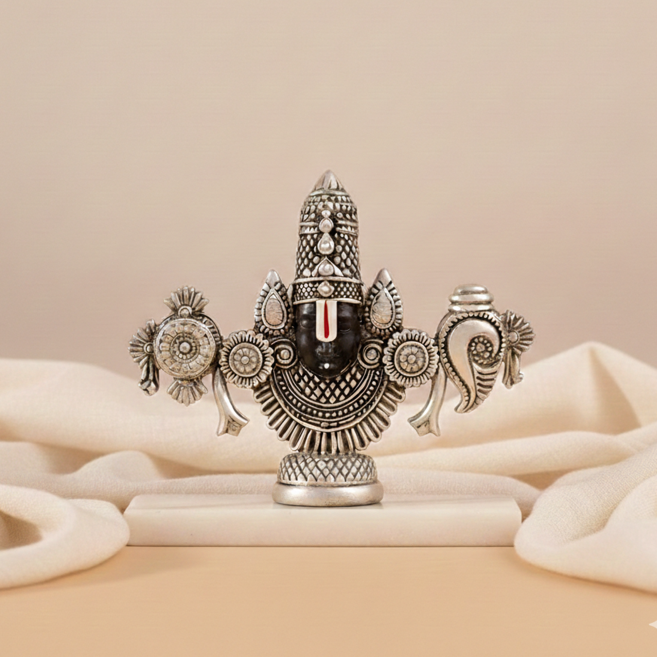Experience the grace, prosperity, and protection of Tirupati Balaji with this intricately designed Tirupati Balaji Face Idol. Featuring the sacred face of Lord Balaji, this idol is a symbol of devotion, prosperity, and spiritual blessings and a revered as the giver of wealth, peace, and fulfillment of wishes. Crafted with exquisite silver detailing, this Balaji face murti is perfect for pooja rooms, temple altars, or as a thoughtful gift for religious occasions.