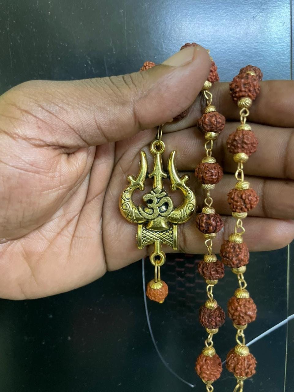 Material: Genuine 5 Mukhi Rudraksha + Premium Gold Plated OM Trishool Pendant
