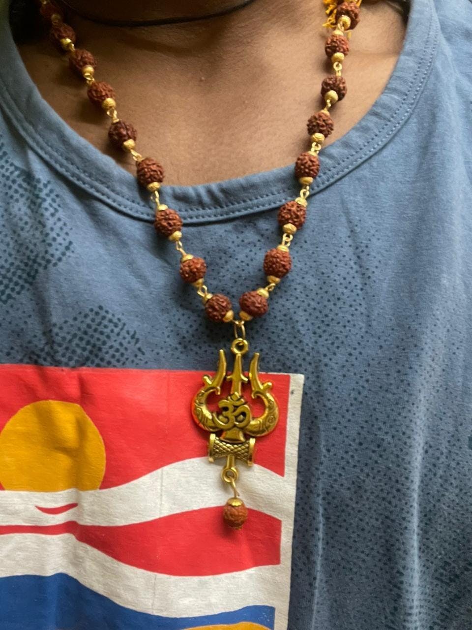 Gold Plated OM Shiva Trishool Rudraksha Necklace