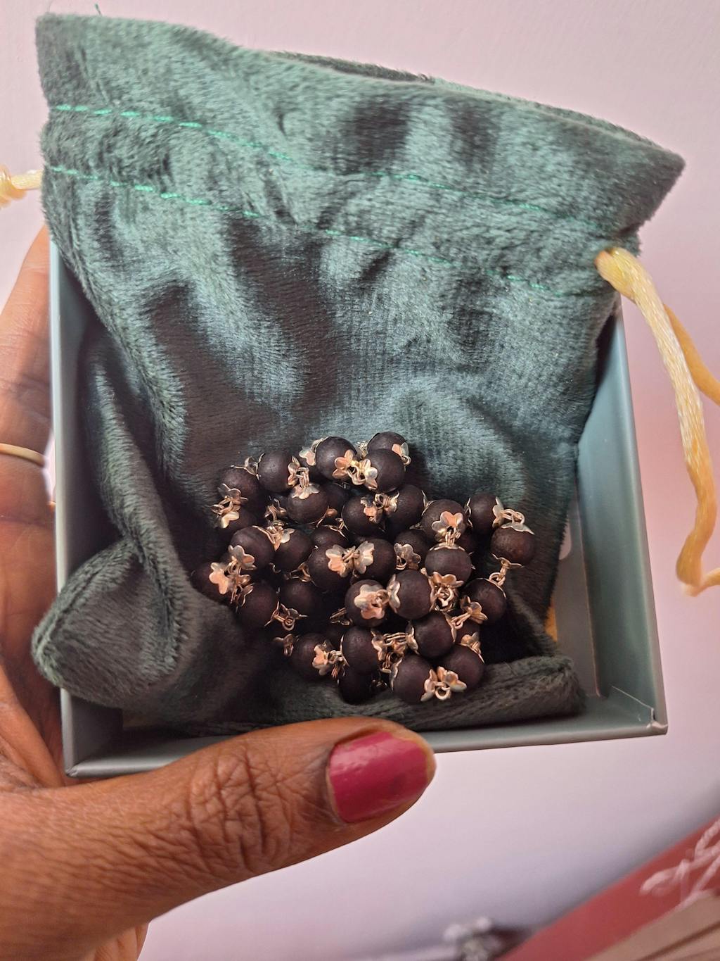 Karungali can be worn as a malai or bracelet, just like regular jewellery. Many people prefer to start wearing it on a Saturday, but this is optional. There are no strict rules—wear it in a way that feels comfortable and natural to you. Intention matters more than timing.