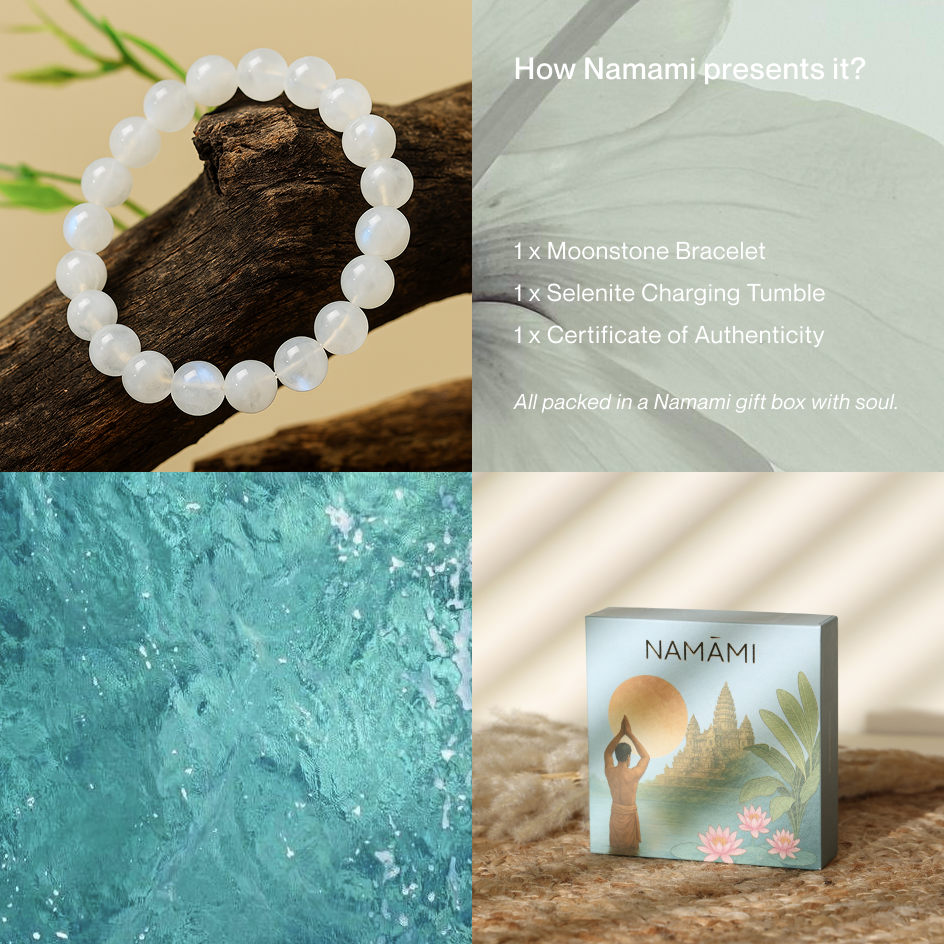 • Selenite Infusion: Each bracelet is accompanied by a Selenite crystal, celebrated for its cleansing and recharging powers. It keeps your Moonstone energetically clear and vibrant, while also supporting peace, clarity, and spiritual balance.